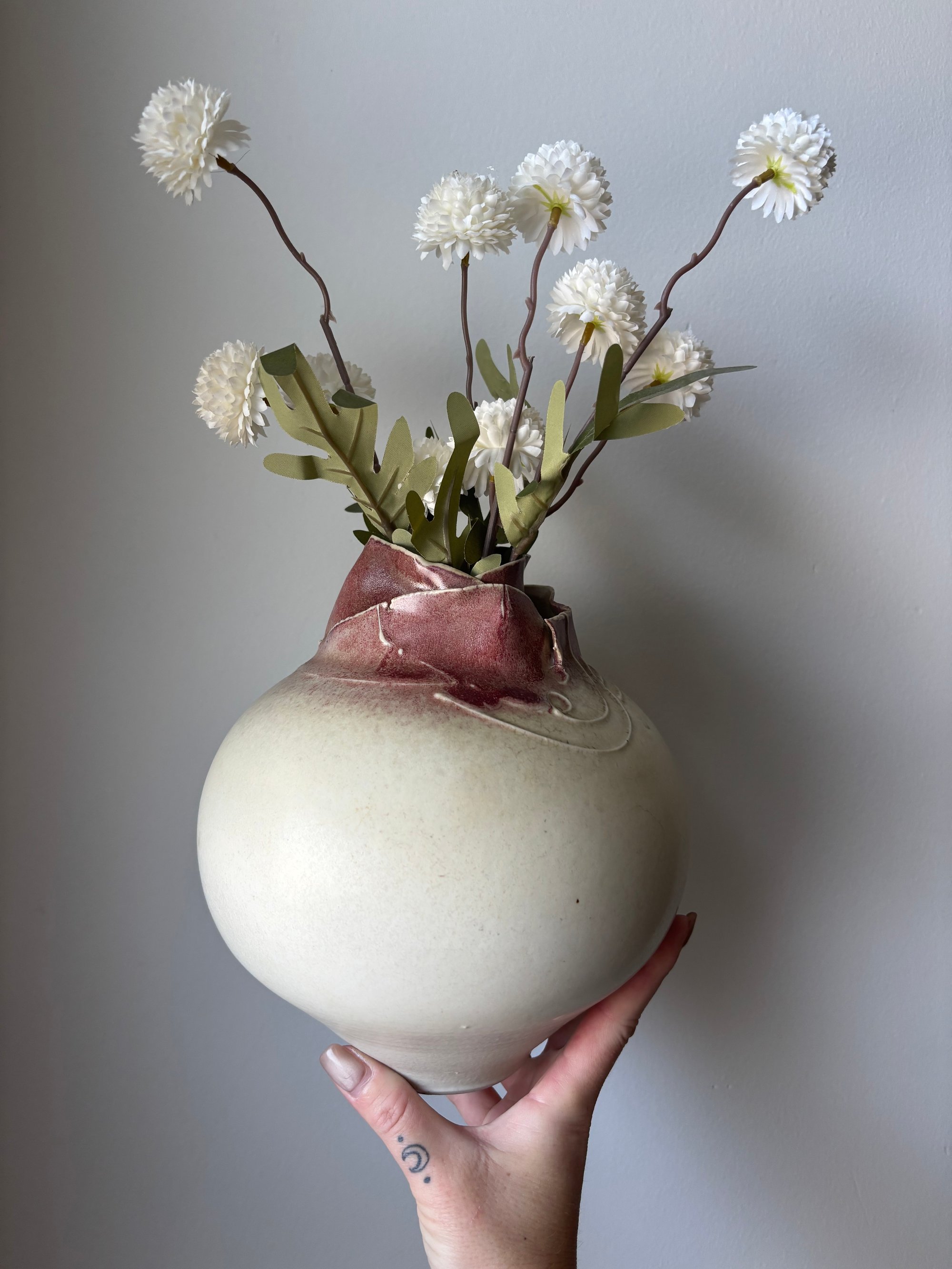 Gorgeous handmade pottery vase | approx 9” tall x 10” | signed by the artist | this piece is truly unique |