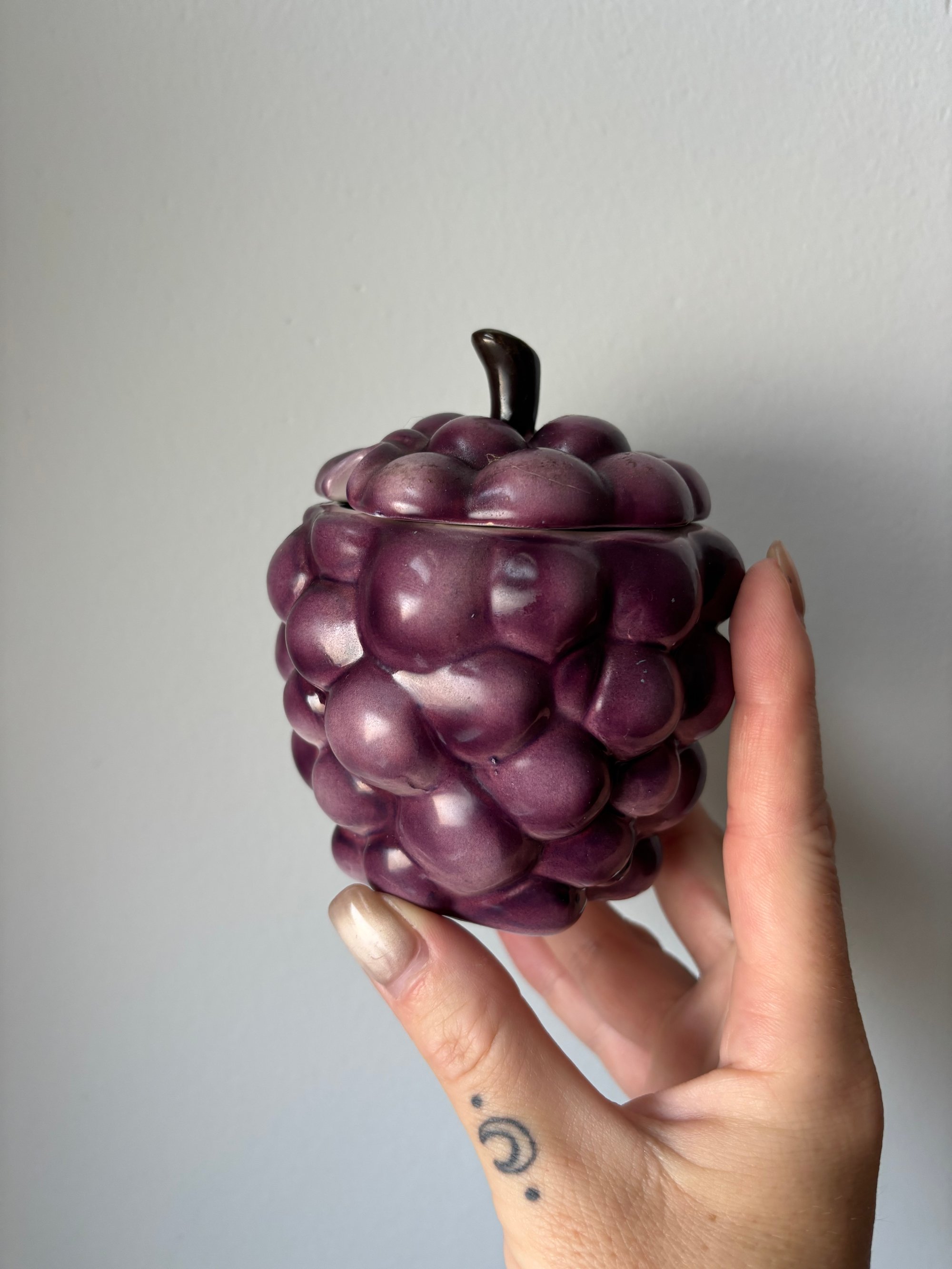 Vintage ceramic lidded grape jelly jar | approx 5” tall | 🍇