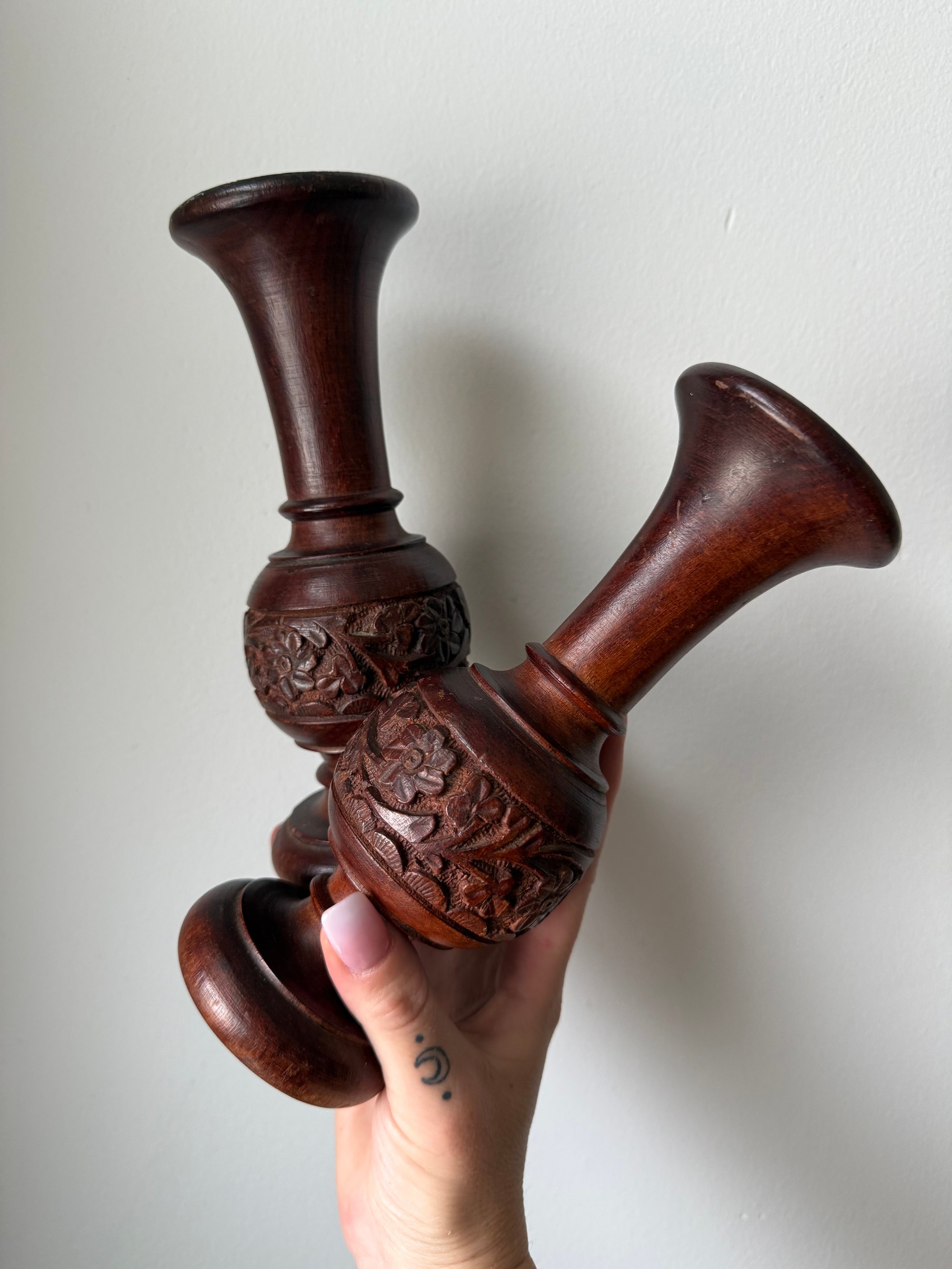 Vintage Hand Carved Candle Stems/vase