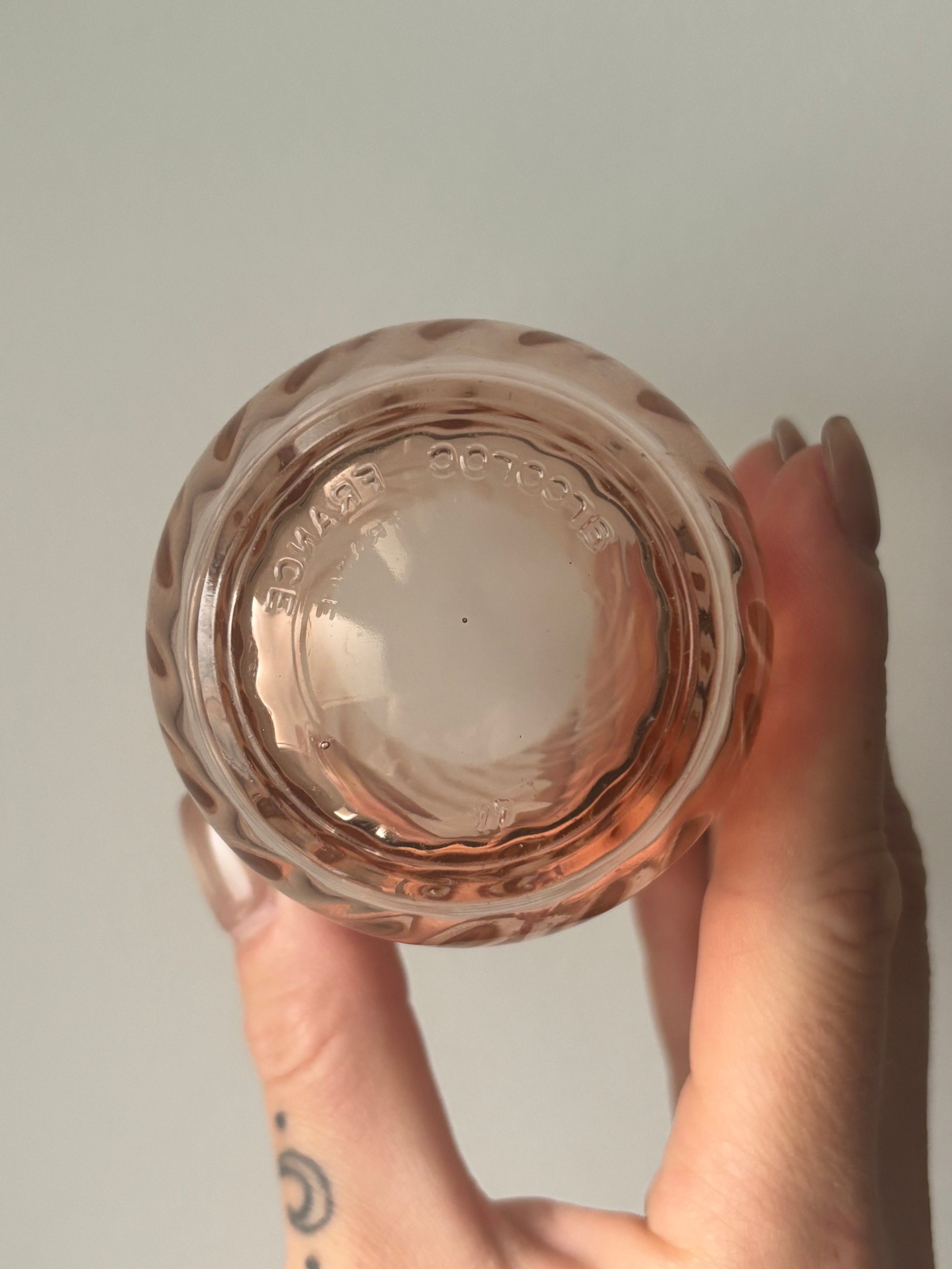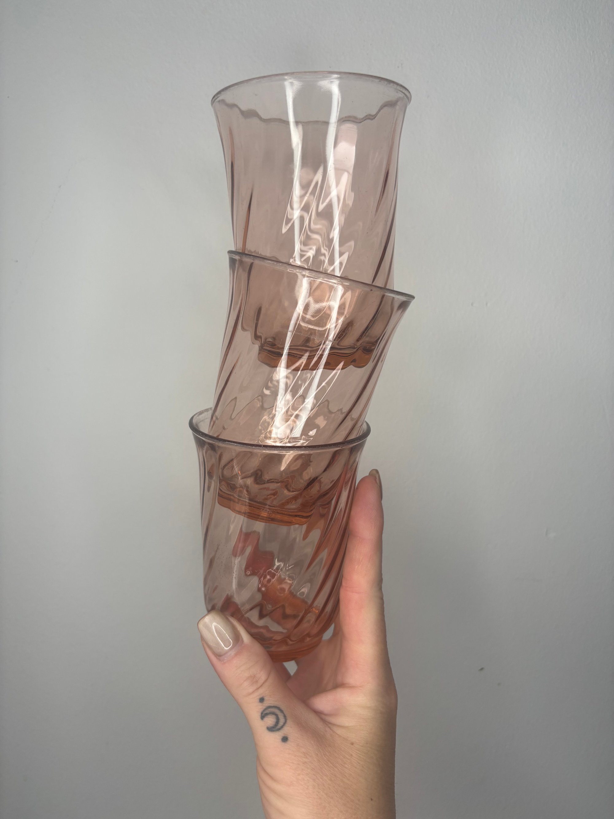 Set of 5 vintage translucent pink swirl glass tumblers | from the Rosaline pattern by Luminarc Arcoroc made in France | circa 1980’s | approx 4” tall |