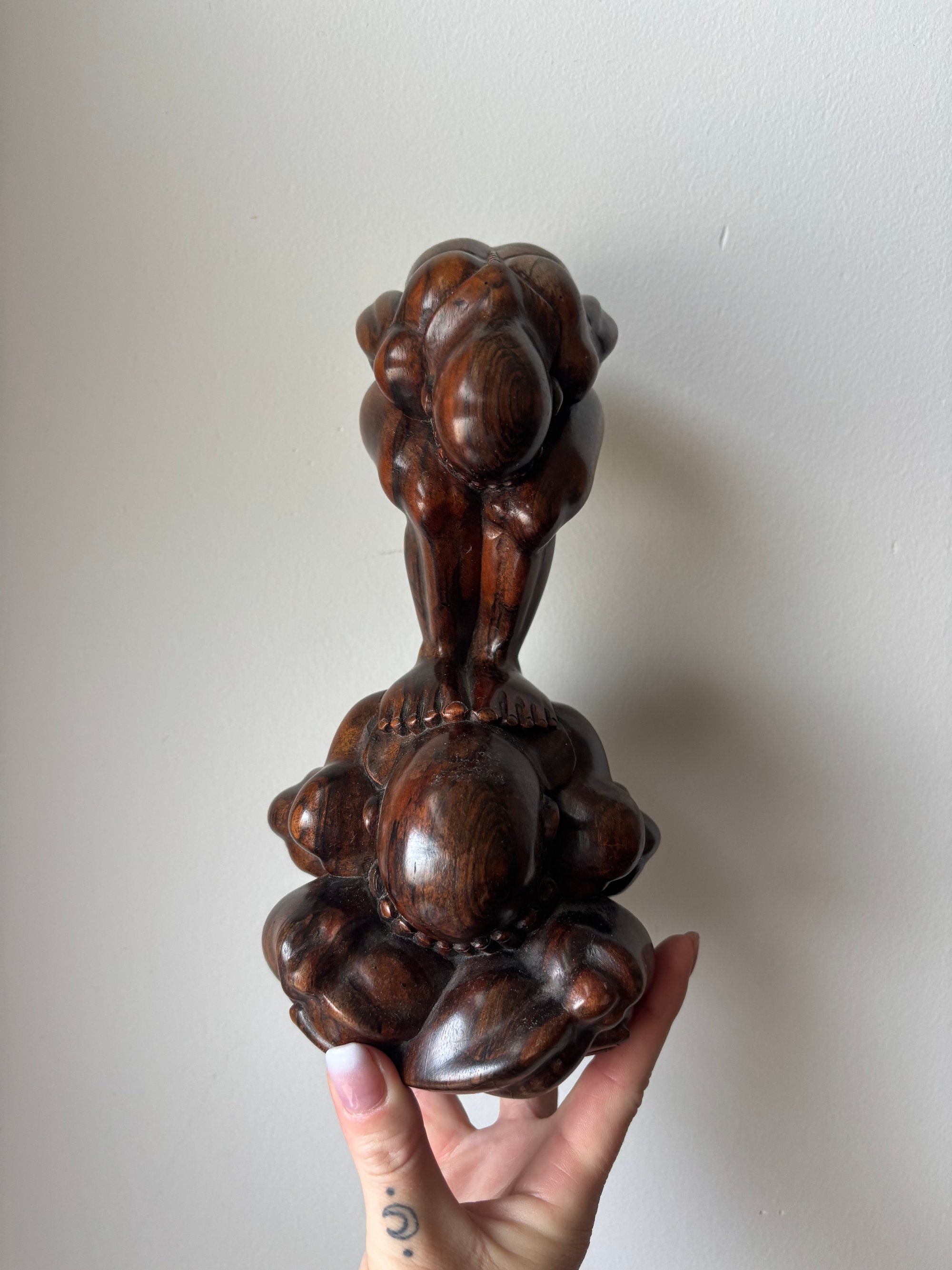 Vintage carved Saur wood weeping Buddha yogi statue | approx 10” X 6” |